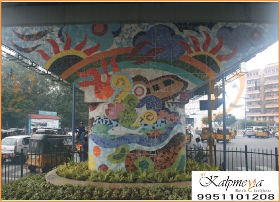 Mosaic Tiles Muralon Flyover in hyderabad, With Theme : 5 Elements of Earth & Monuments of Hyderabad,